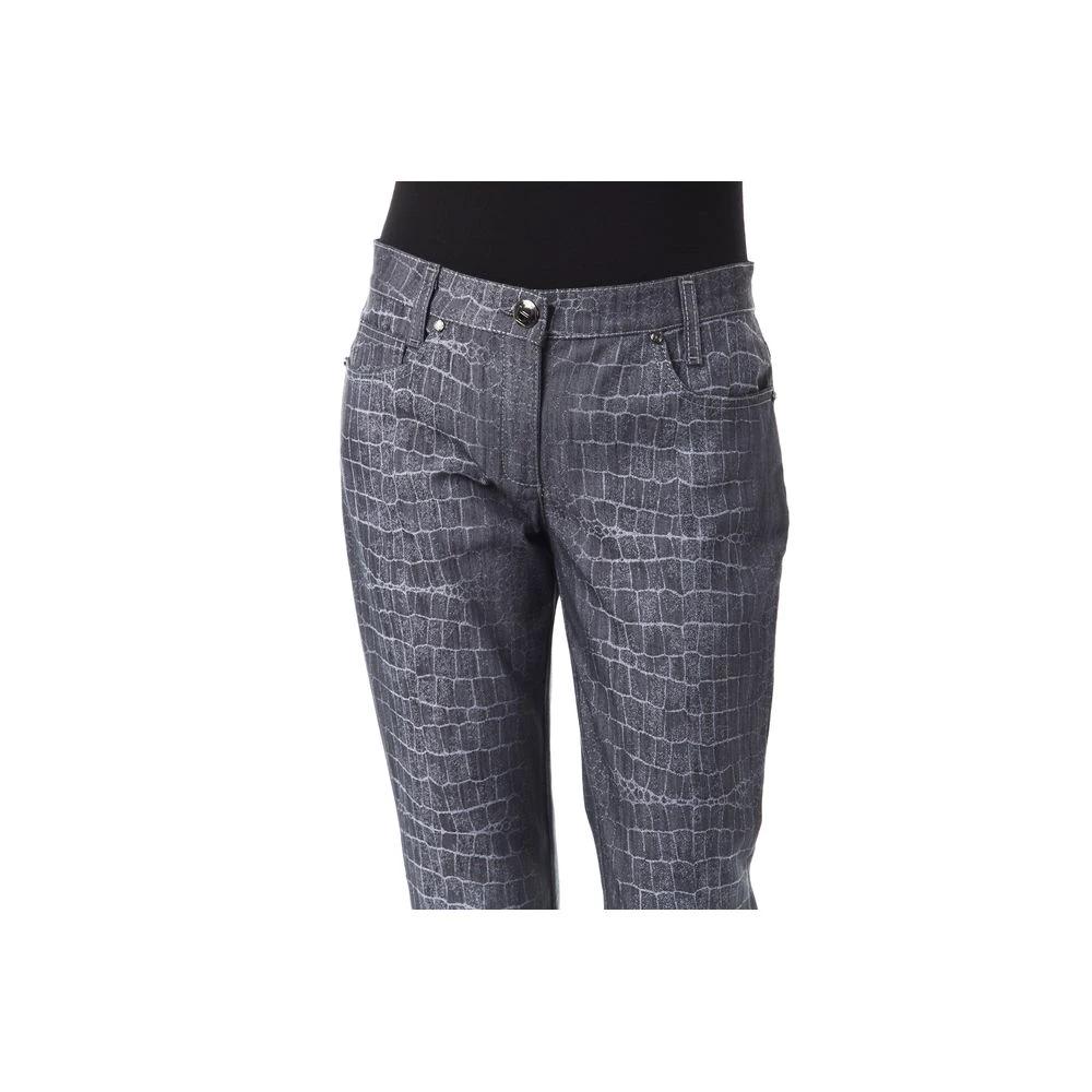 Byblos Black Viscose Women Pants With Crocodile Print Showcasing Italian Craftsmanship For Bold Style And Day Comfort