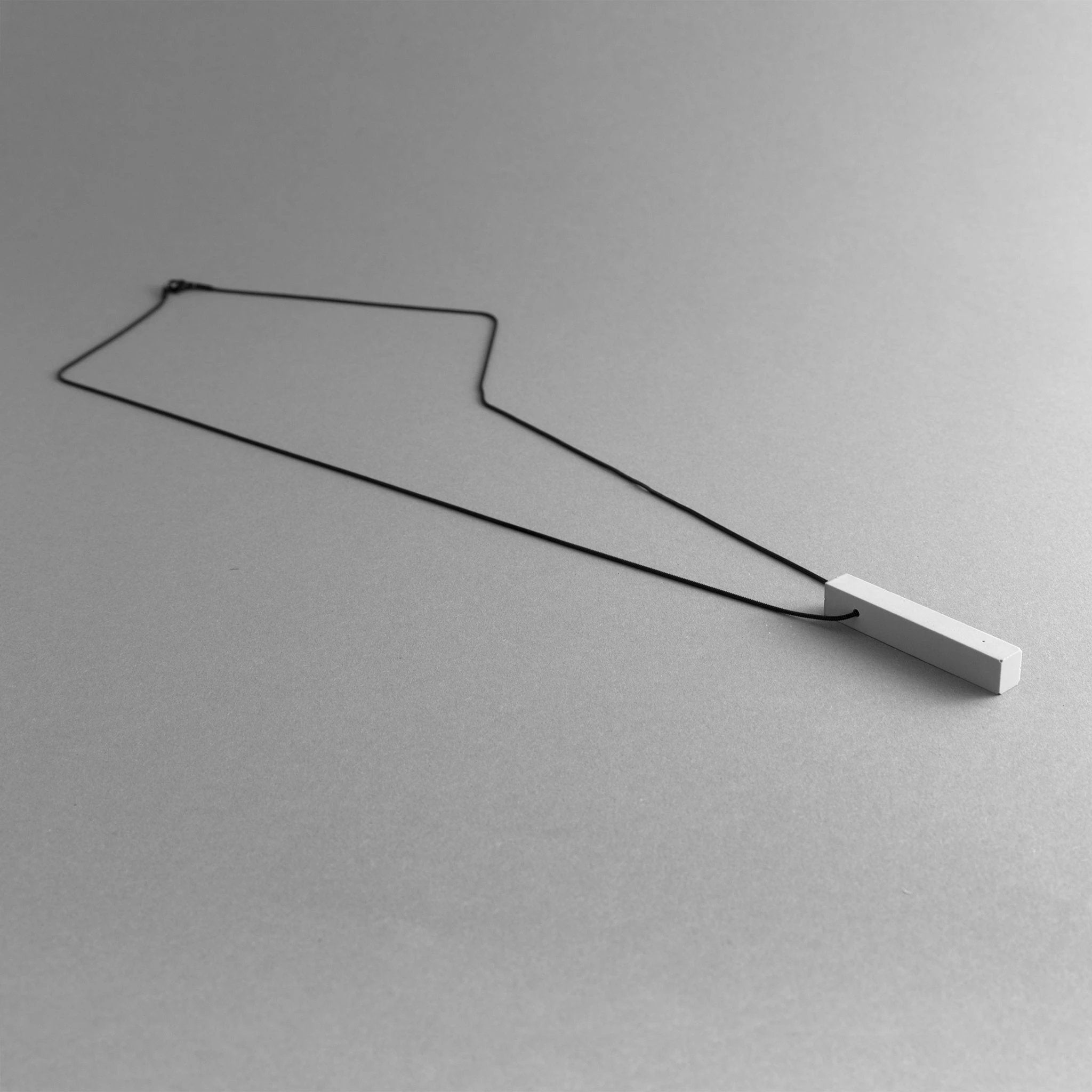 For a cohesive minimalist look, pair MODULOQUATTRO with the MK3 Black Concrete ring—its symmetric lines echo the pendant’s geometry for a unified, architectural vibe. For a bold urban statement, mix the white or grey pendant with the black chain to create a striking contrast that remains understated in any setting.
