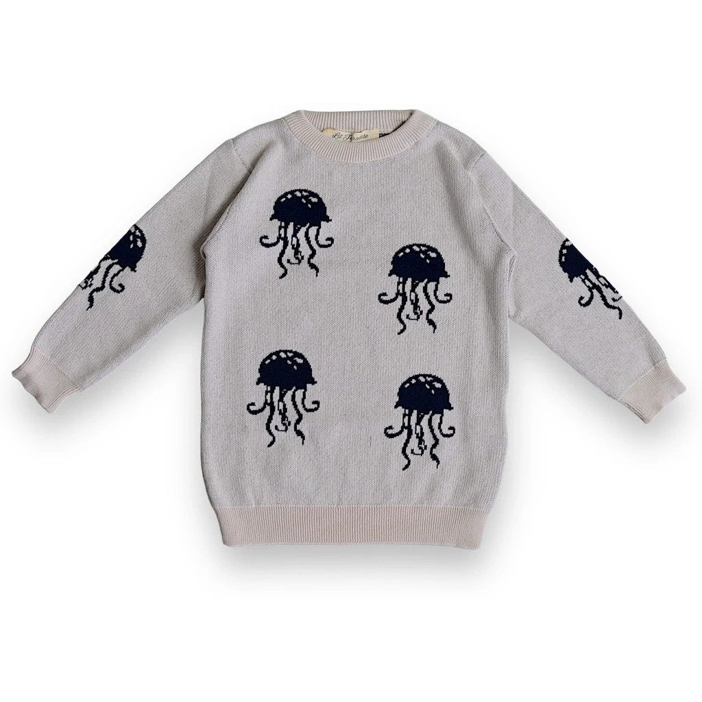 Ideal for eco-minded families and kids who love ocean-inspired decor, this jellyfish sweater stands out in a crowded wardrobe with its unique motif and sustainable construction. Add it to your cart to give your child a soft, stylish layer that’s as kind to the earth as it is to their imagination.