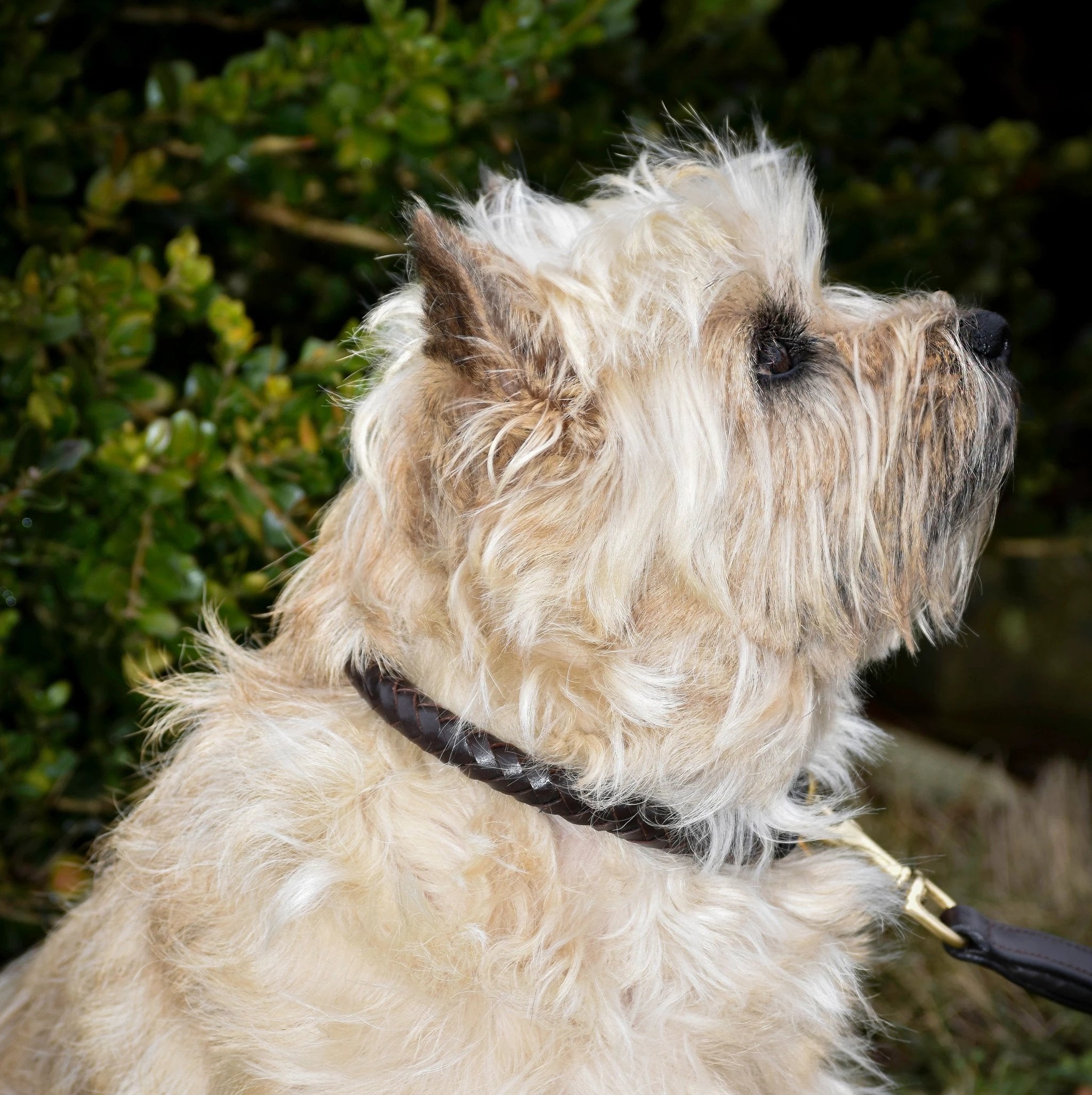 To keep the leather looking its best, wipe with a damp cloth when needed and avoid soaking or prolonged exposure to water. Periodic conditioning with a leather-safe product will help maintain suppleness and extend the life of the collar.