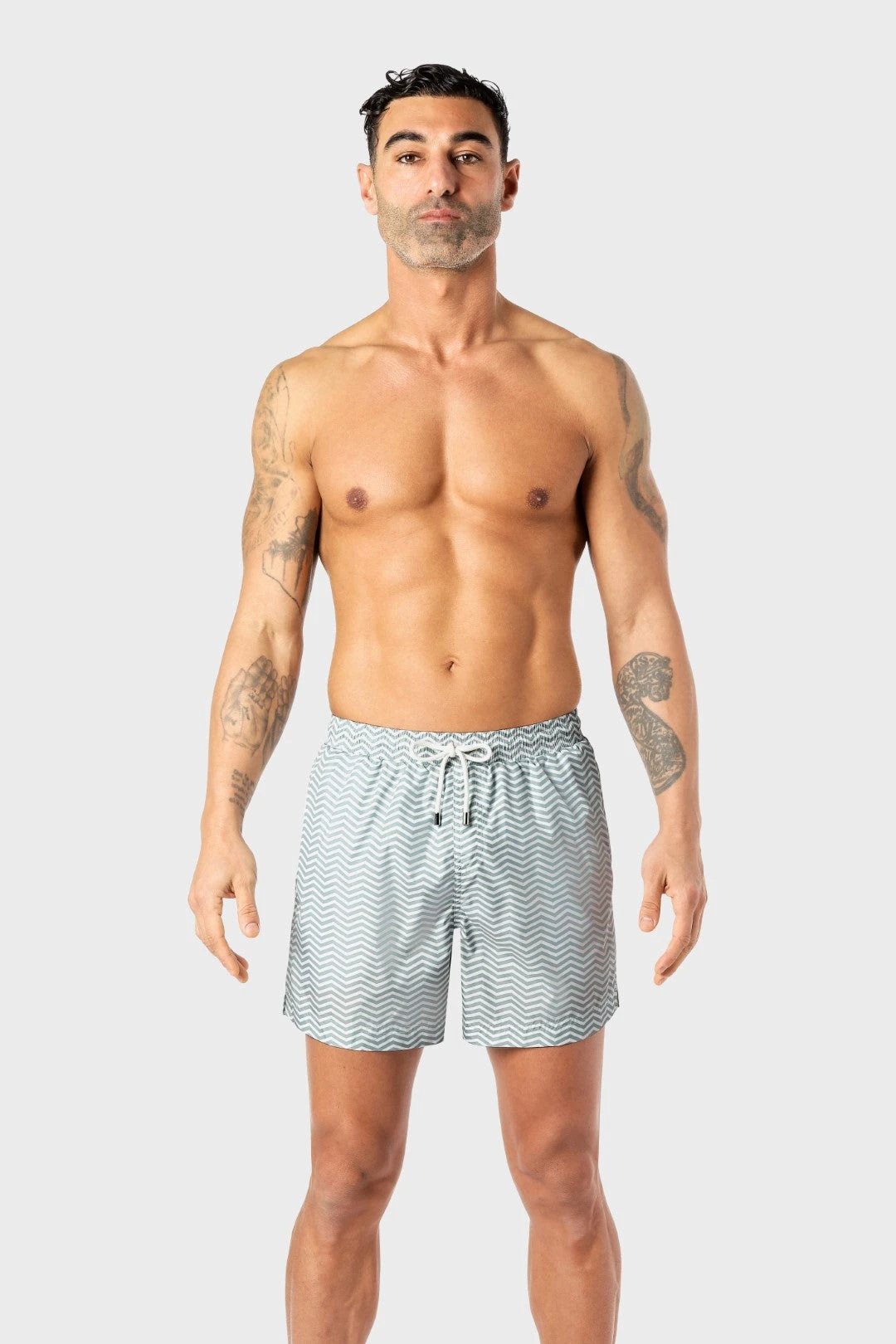 Zig Zag Grey Custom Made Swim Shorts by Marda Swimwear Premium Japanese Fabric Quick Dry Water Resistant Performance
