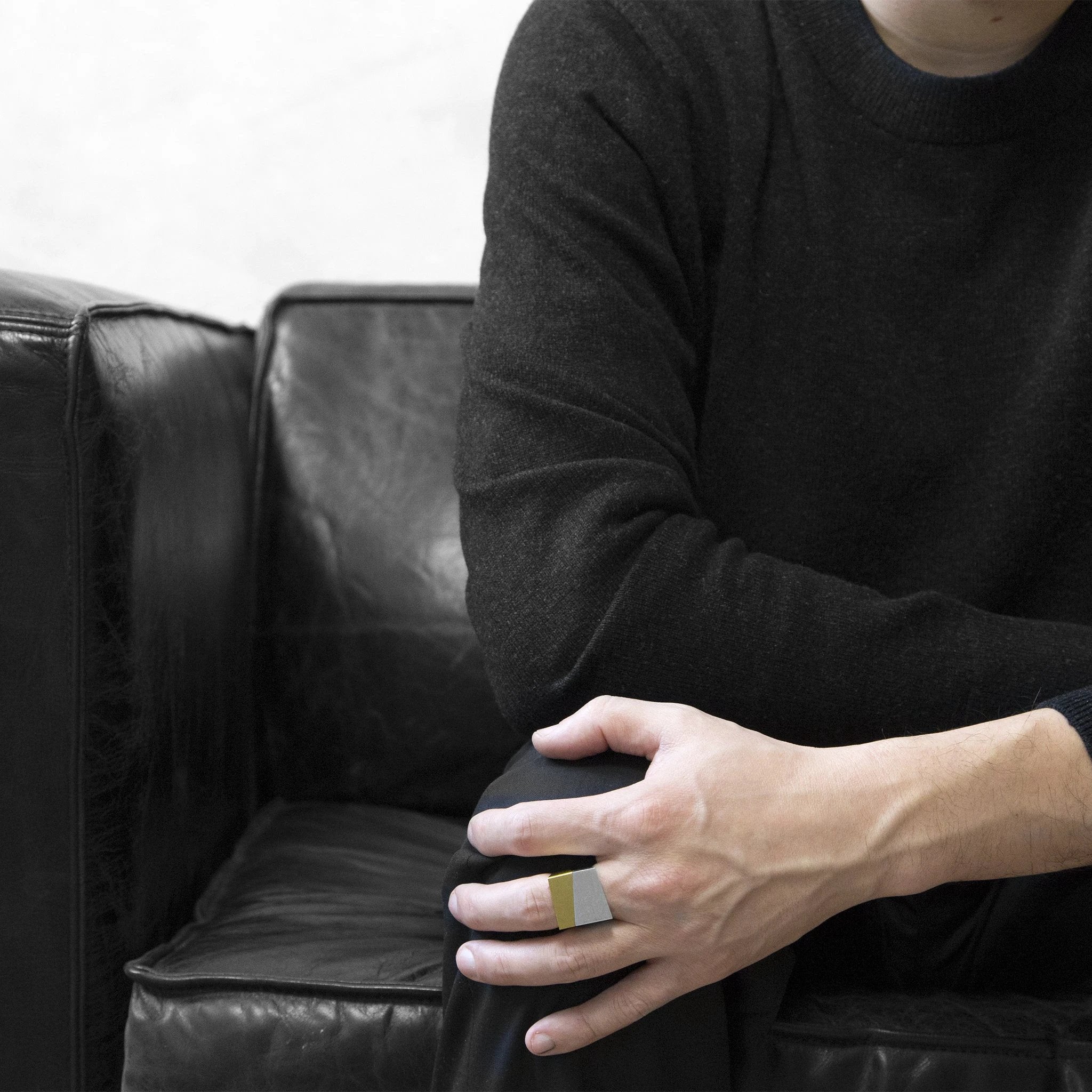This set is perfect for layering with other pieces from the ASSEMBLED Collection to create modular, dynamic configurations. Wear one ring for a minimalist statement or stack both to emphasize modern geometry. Pair with leather, denim, or tailored fabrics to highlight the clean lines and the tactile contrast between brass and aluminum. It’s a versatile option for those who want jewelry that feels intentional and contemporary without overpowering the rest of their look.