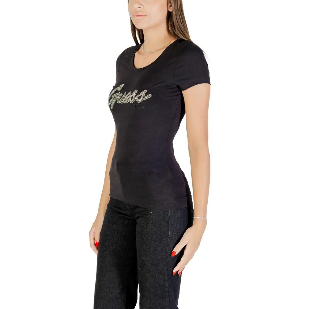 The Guess SS LOGO HOT FIX TEE W5YI16 J1314 women’s short-sleeved t-shirt is an iconic piece, perfect for those who love a casual yet sophisticated style. Made from soft cotton jersey with a hint of elastane, this t-shirt ensures comfort, a slim fit, and freedom of movement. The front is adorned with the Guess logo in sparkling rhinestones, adding a glamorous and distinctive touch to any everyday outfit. The feminine cut and classic crew neck make it a versatile choice, suitable for both leisure time and informal occasions. A must-have for the season, easy to pair with jeans or skirts for a contemporary look.