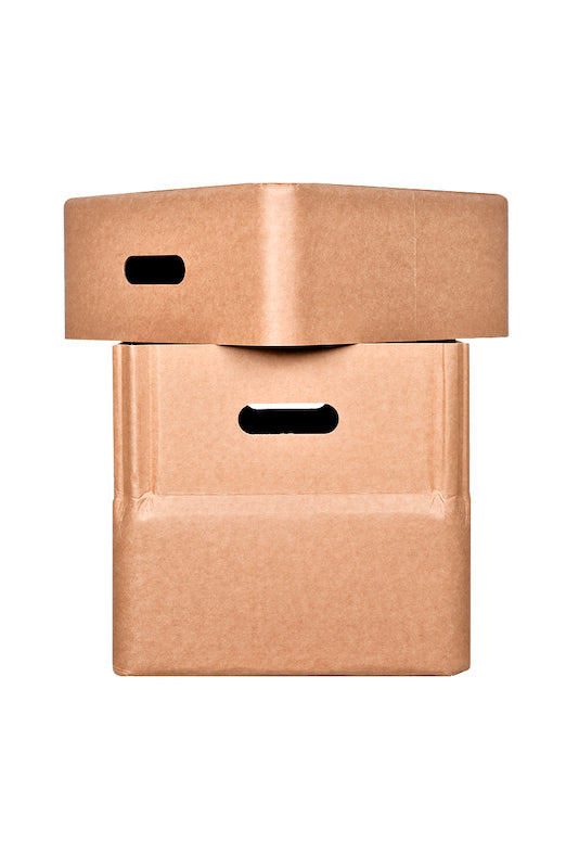 Kraftliner is a multilayered, glued cardboard. This is one of the most durable and sturdy paper types out there; it is fully recyclable. The production of MULGEO furniture is a process without any CO2-emissions and the only waste materials are pieces of die-cuts, which are recycled after production. Handles, for example, are recycled in creating new designs.