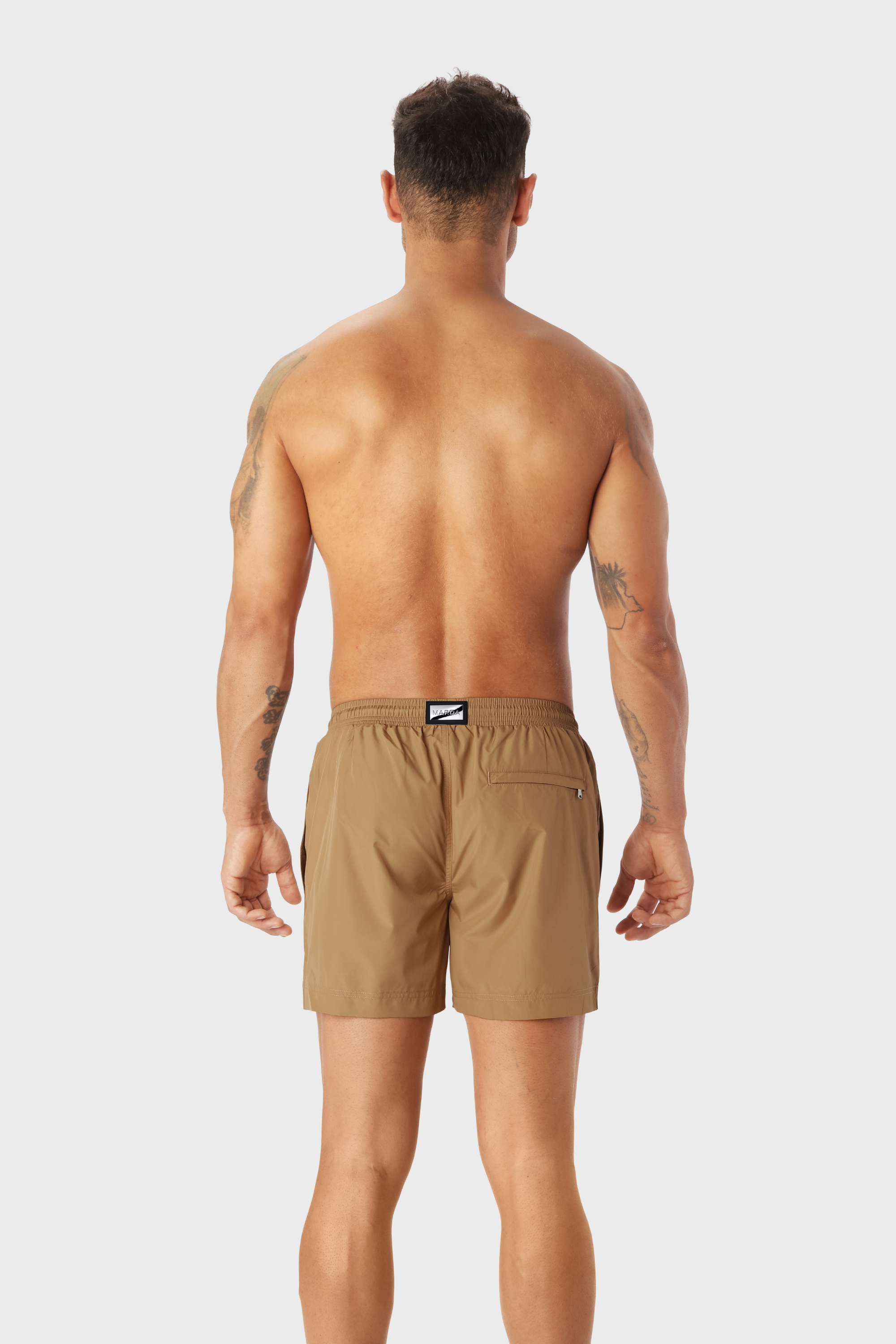 Add a cool and timeless color to your beachwear wardrobe with our high-end sustainable swim shorts crafted from 7 upcycled plastic bottles. Marda swimwear is custom made from a premium Japanese fabric that is light, soft and waterresistant, taking just a few minutes to dry post-swim. Confidently understated, yet highly functional. They are fitted with back pocket zippers, chrome stainless steel cord stoppers and complete with our signature recycled metal rubber waistband logo.