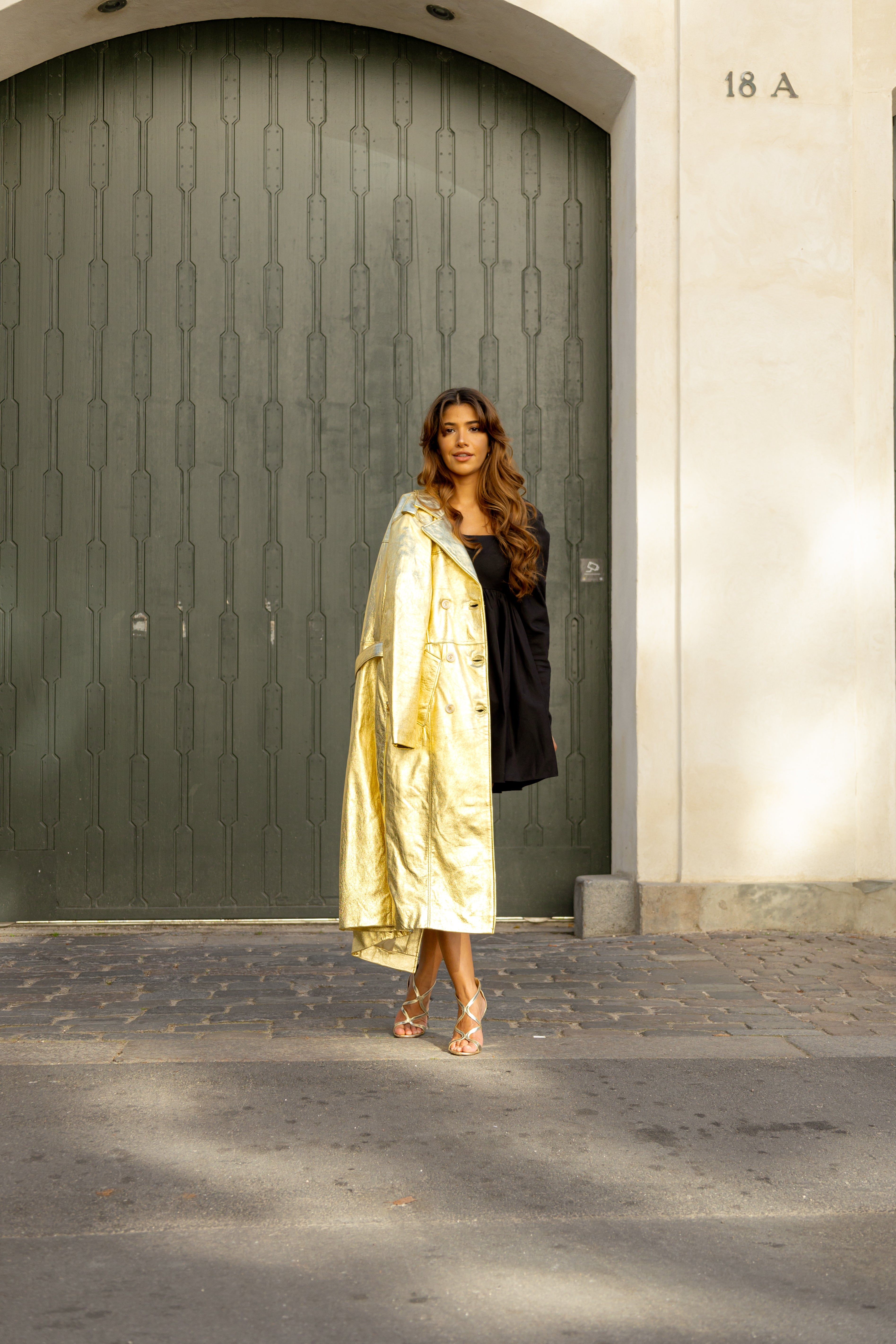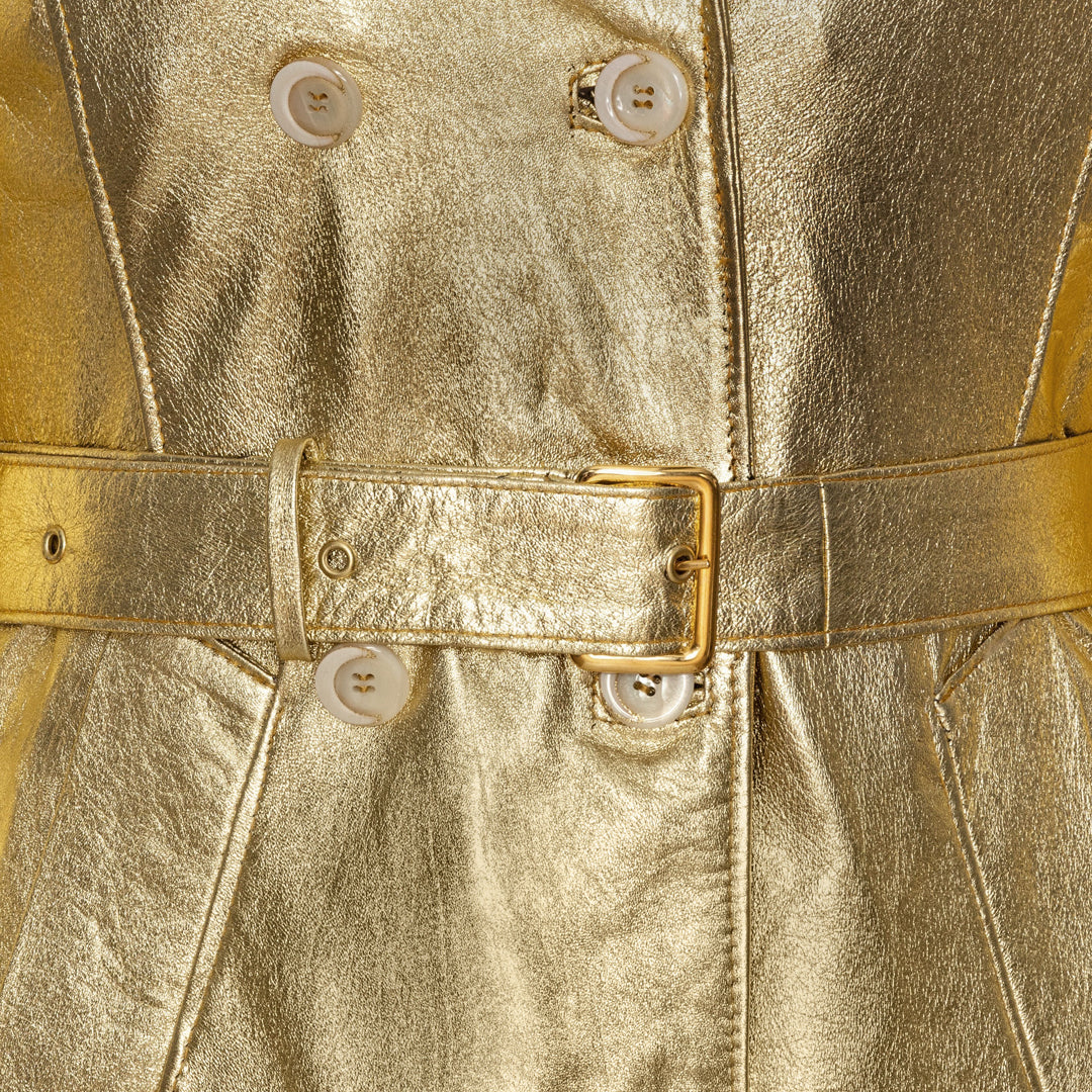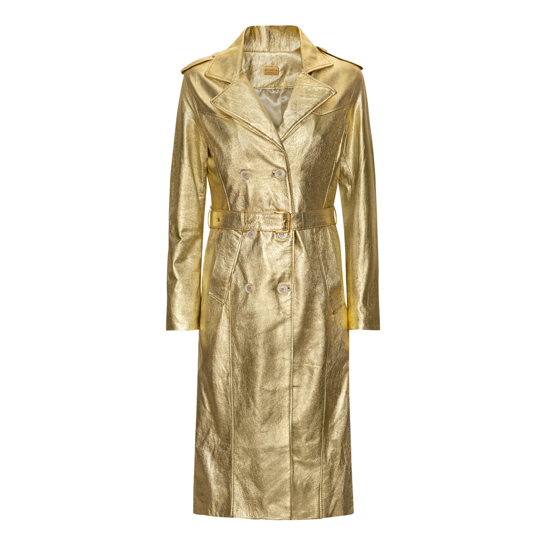 Indulge in the luxurious feel and impeccable craftsmanship of our Gold Leather Trenchcoat.